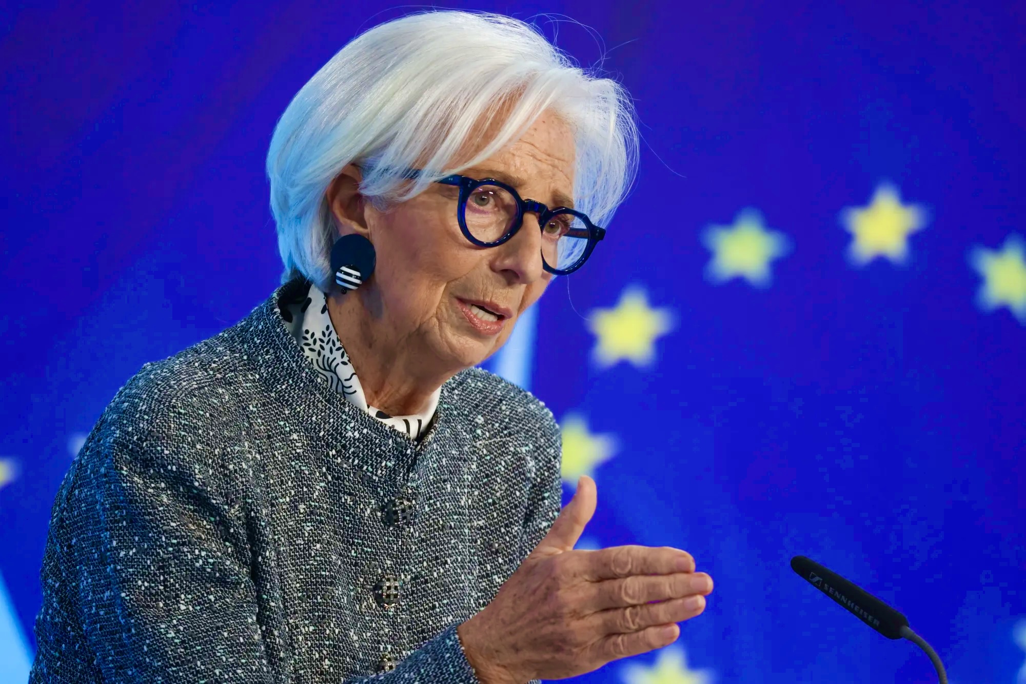 Лагард заявила, что риски для инфляции смещены в сторону повышения, а для экономики — в сторону понижения. Рост цен может усилиться из-за таких факторов, как повышение инфляционных ожиданий, ускорение роста зарплат и сбои в глобальных цепочках поставок.