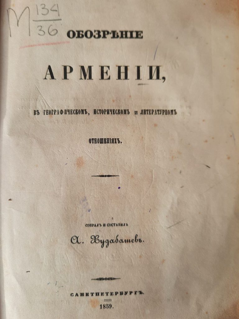Заслуживает внимания и работа статского советника Александра Худобашева «Обозрение Армении в географическом, историческом и литературном отношениях», опубликованная в Санкт-Петербурге в 1859 году.