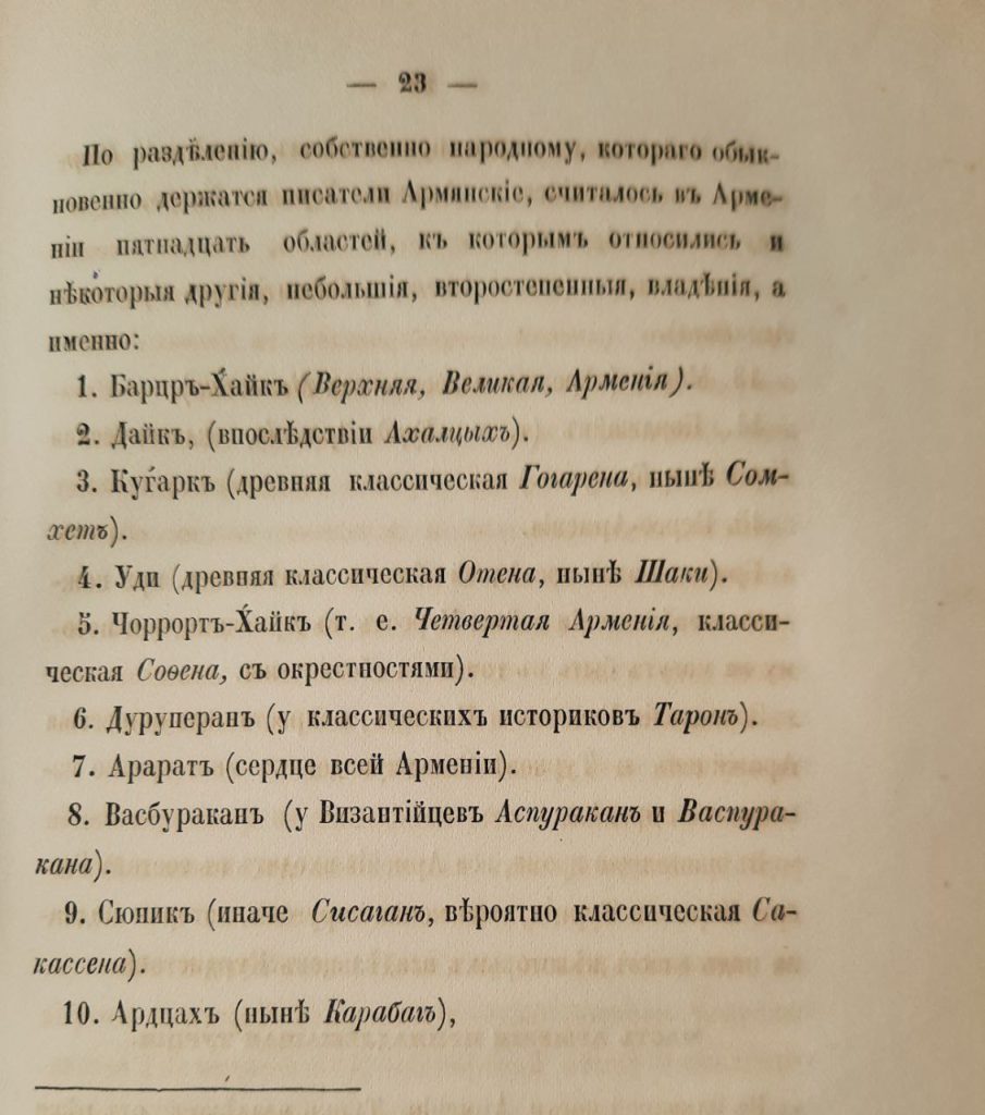 На 23 странице его научного труда Арцах значится в качестве армянской провинции. Аналогичным образом картину армянского мира описывает царский генерал Виктор Абаза в своей «Истории Армении», которая была опубликована в 1888 году.