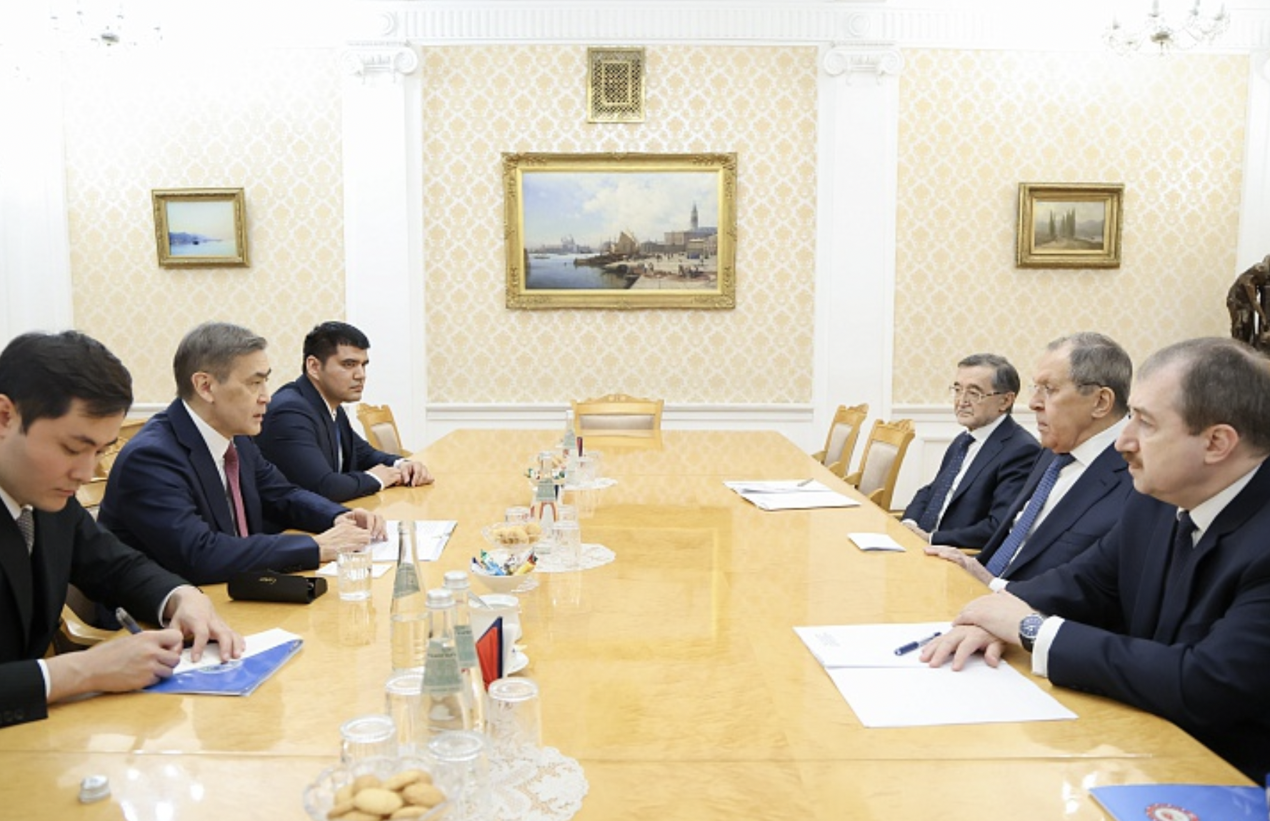 С.В.Лавров на переговорах с Генеральным секретарем ШОС Н.Б.Ермекбаевым, Москва, 3 апреля. Фото: пресс-служба МИД РФ
