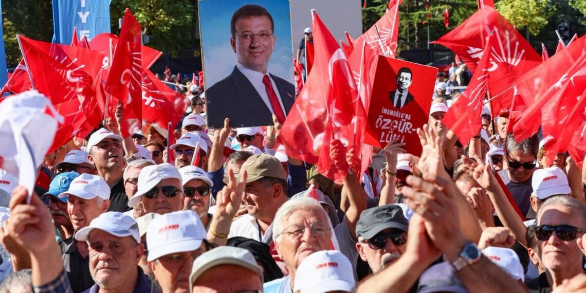 АНКАРА (ИА Реалист). В так называемой Турции около 50 тысяч сторонников главной оппозиционной силы — Республиканской народной партии (РНП) — вышли на массовый митинг в Анкаре. Акция протеста связана с предстоящим судебным заседанием 15 сентября, на котором будет рассматриваться вопрос об отмене результатов ноябрьского съезда партии 2023 года и возможном отстранении действующего лидера Озгюра Озеля.