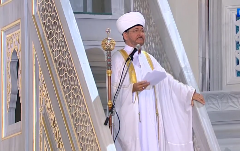 От имени Духовного управления мусульман РФ и Совета муфтиев России поздравляю всех своих единоверцев — мусульман России, также мусульман стран СНГ и всю мировую исламскую умму с этим великим днем Ид аль-Фитр — Ураза-байрам. Чувства братства и духовного единения разделяем все мы, кто собрался сегодня в молельном зале главной российской мечети в центре Москвы.