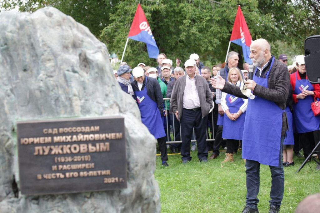 По окончании работ в память о Юрии Михайловиче и его необычном подарке городу на территории восстановленного исторического сада в Коломенском был торжественно открыт мемориальный камень работы народного художника РФ С.А. Щербакова с надписью «Сад воссоздан Юрием Михайловичем Лужковым (1936-2019) и расширен в честь его 85-летия».
