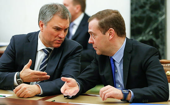Вячеслав Володин и Дмитрий Медведев. Иллюстрация: РБК