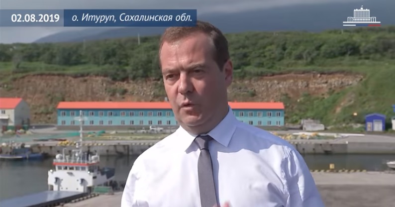 Несмотря на предупреждения японского внешнеполитического ведомства о нежелательности посещения председателем правительства РФ Дмитрием Медведевым южных Курил, на которые продолжает незаконно, в угаре реваншизма, претендовать Япония, деловое посещение самого крупного из островов южных Курил, острова Итуруп, все же состоялось 1 августа 2019 года.