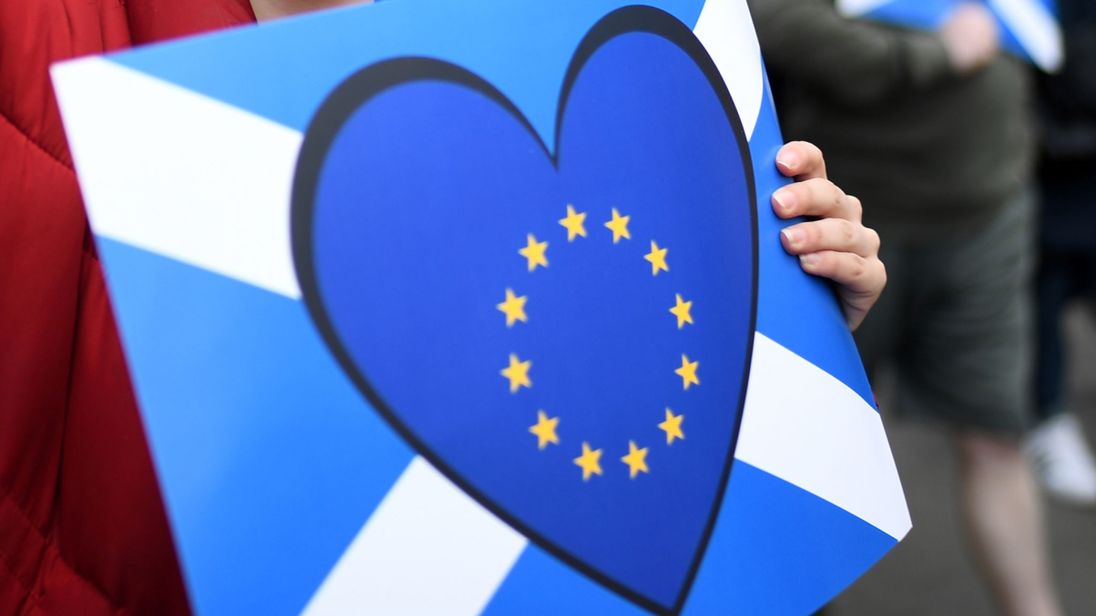 Флаг ЕС на фоне флага Шотландии. Фото: Sky News