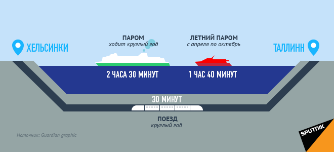 Планируемый туннель между Хельсинки и Таллином имеет протяженность в 100 километров (62 мили). Проект, основателем которого является финский предприниматель Питер Вестербак, предполагает строительство, как минимум, одного искусственного острова.