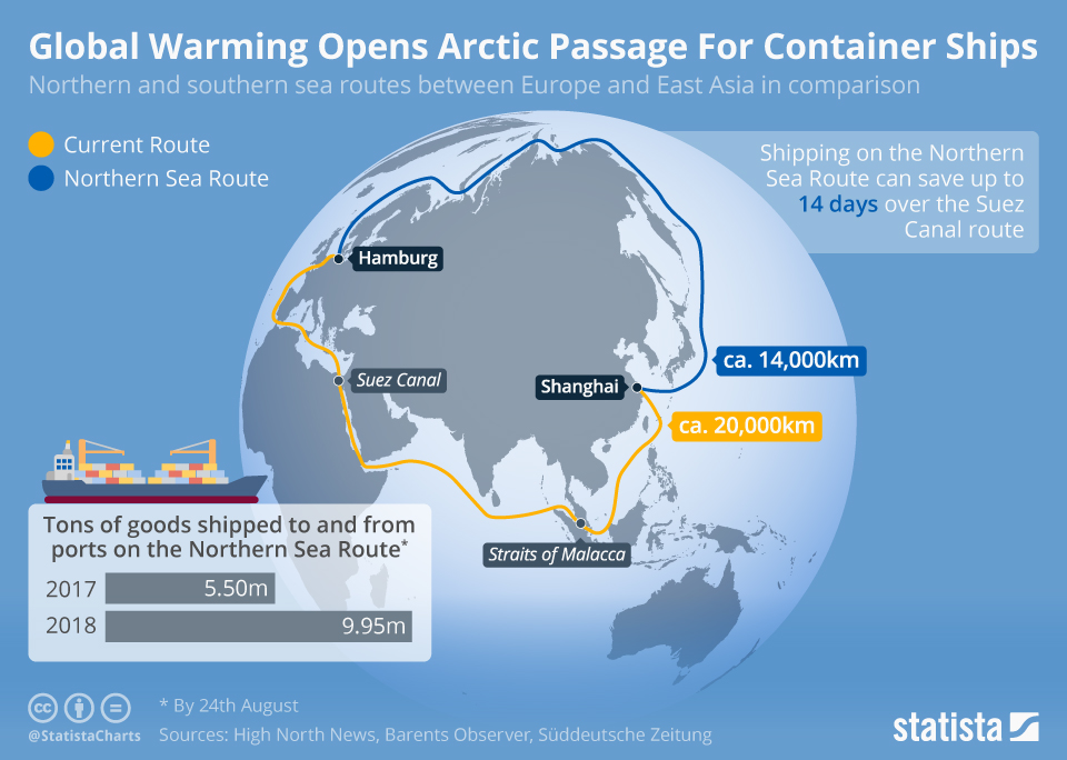 Особое внимание Остхаген уделил Северному морскому пути, который простирается от Берингова пролива до Баренцева моря. «Можно наблюдать увеличение трафика на Северном морском пути, например, для проекта «Ямал СПГ» и туристических круизных судов. Но этот маршрут не будет таким прибыльным, как Суэцкий или Панамский каналы», — уверен норвежский эксперт.