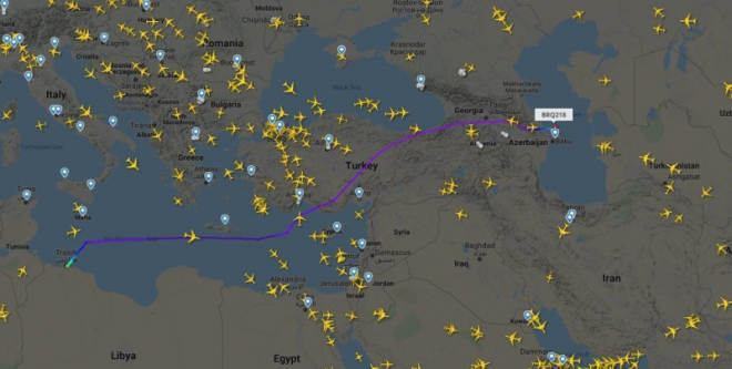 ТРИПОЛИ (ИА Реалист). Сегодня, 30 сентября, в аэропорту Баку приземлился авиалайнер компании Burak Air, вылетевший накануне из ливийской столицы Триполи. На его борту могли находиться сирийские боевики. Перелет зафиксирован на ресурсе Flightradar24.