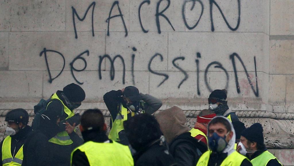 "Макрона в отставку", гласит надпись на стене. Фото: RT