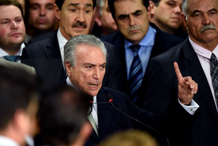 Перед лицом этих фактов Мишел Темер, который в качестве вице-президента принимал участие в заговоре с целью свержения правительства Дилмы Руссефф, может сам столкнуться с импичментом в намного более суровых условиях, потому что если процесс против Дилмы Руссефф обвинял ее не в актах коррупции, а в нарушении правил бюджета (отсюда противоречие в квалификации импичмента, который также называют переворотом), ходатайства об импичменте Темера указывают на акты пассивной коррупции, препятствия правосудию и участие в преступных группировках.