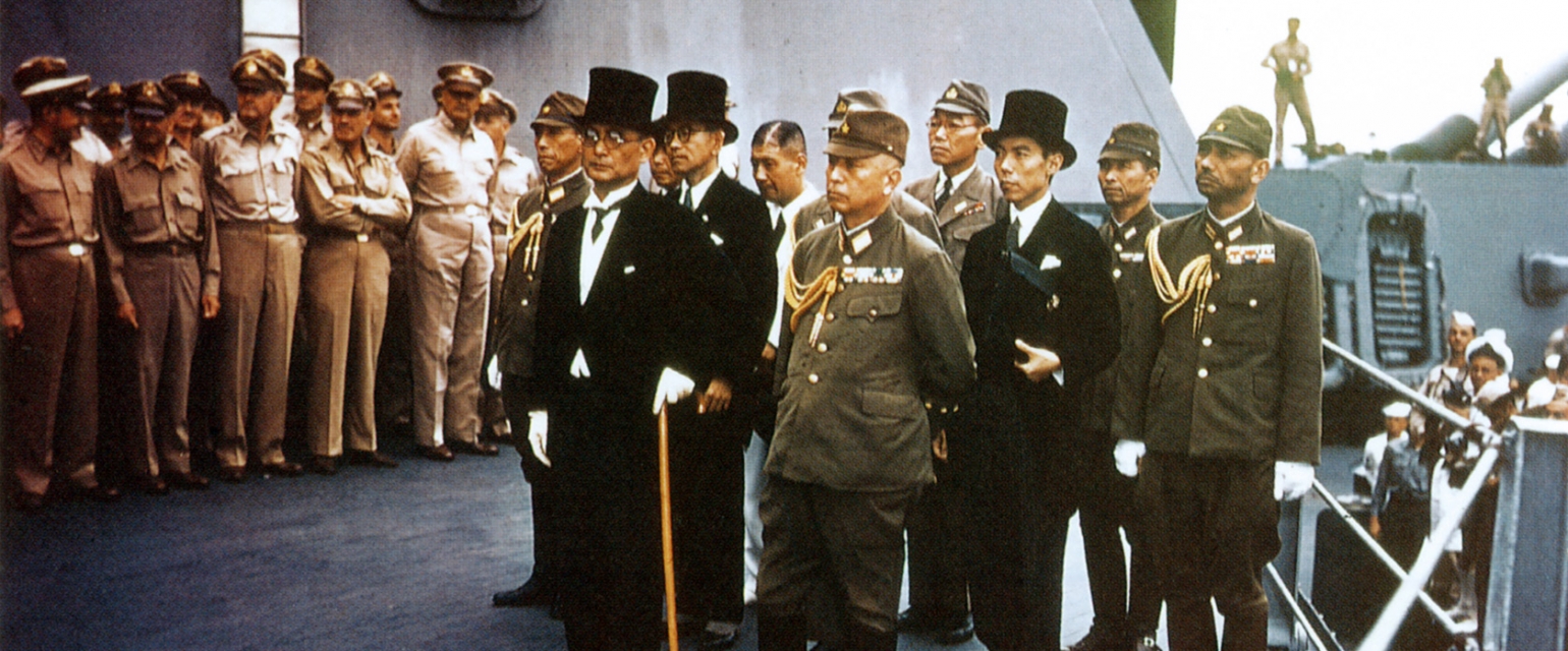 Японская делегация на подписании Акта о безоговорочной капитуляции. Линкор «Миссури» , 2 сентября 1945 года