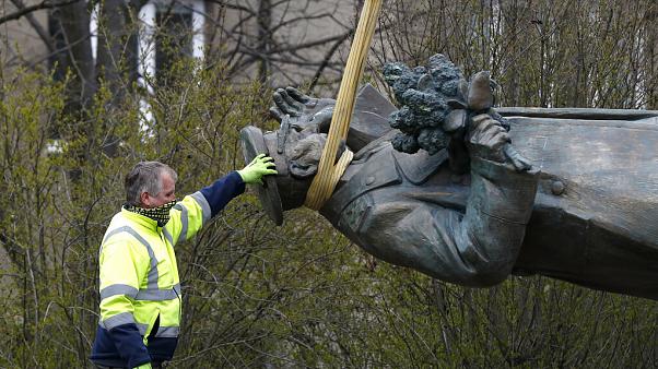 Демонтаж памятника маршалу Коневу. Фото: Petr David Josek / Associated Press