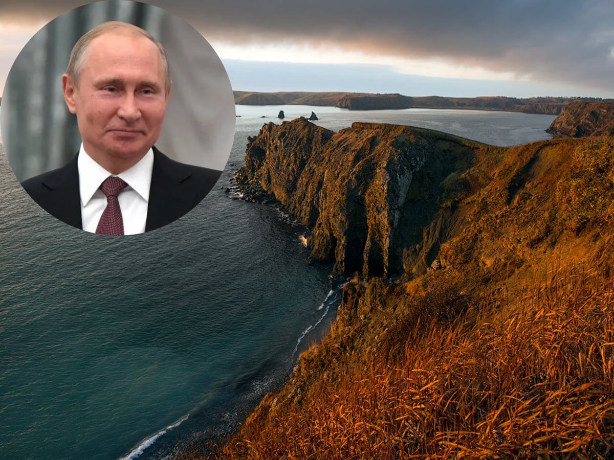 Владимир Путин на фоне Курильских островов. Иллюстрация: topnews.ru