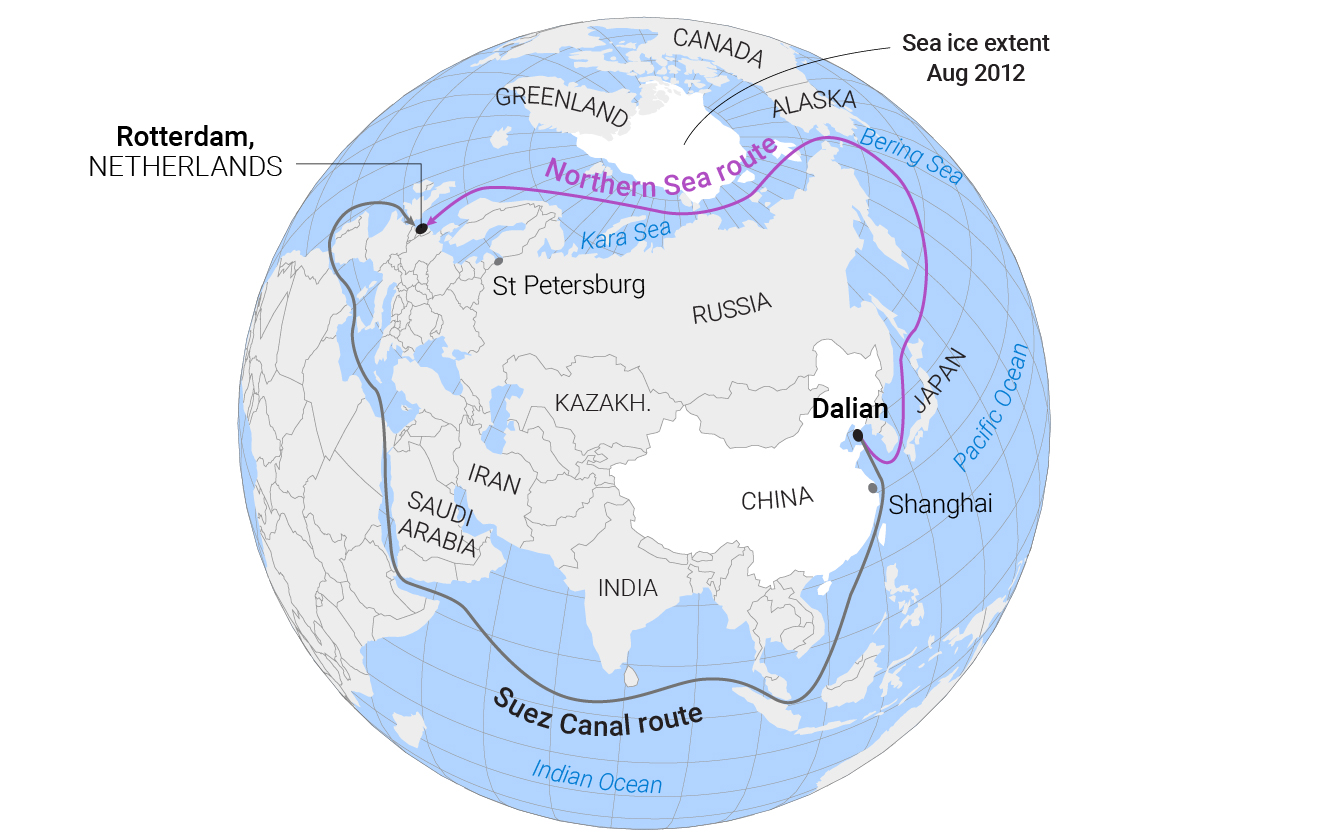 «По мере таяния арктических льдов маршрут в конечном итоге может быть продлен до Скандинавии и обеспечить более легкий доступ к Северному морю, чем к Балтийскому. По данным российских СМИ, путешествие из Шанхая в Санкт-Петербург по этому маршруту займет у грузового судна около 20 дней, тогда как через Красное море и Суэцкий канал это занимает около 36 дней», — отмечает издание.