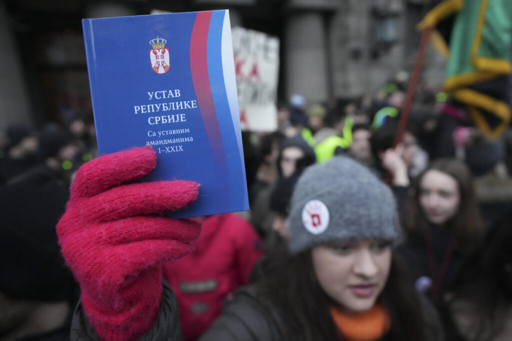 На митинге в воскресенье протестующие зачитывали статьи Конституции Сербии, которые, по их словам, были нарушены различными формами государственного давления на их протесты. Конституционная роль Вучича как президента должна быть в основном церемониальной, но вместо этого он постепенно взял под контроль почти все рычаги власти с момента вступления в должность 13 лет назад.