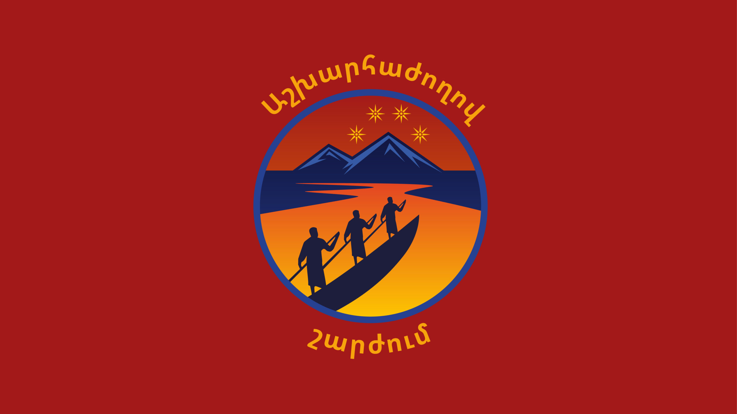 «В нашей жизни большое значение имеют символы, поскольку они влияют на сознание. Создавая эмблему общеармянского движения «Ашхаражохов», мы опирались на ценности и исторический опыт нашего народа. Эмблема «Ашхаражохова» представляет собой полотно из двух цветов — синего и бордового. Синий цвет символизирует небо и вечность, а бордовый — означает силу и напористость.