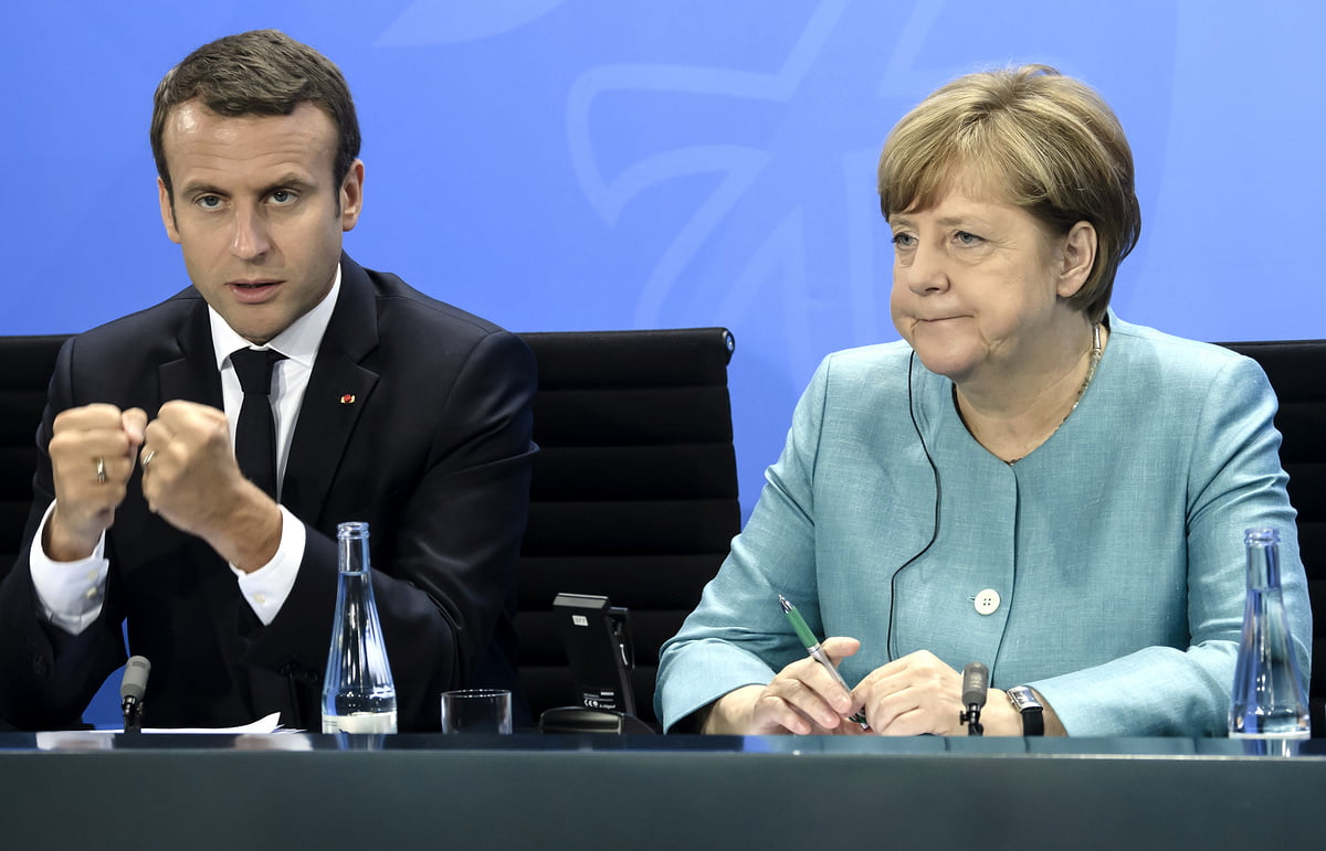 Эммануэль Макрон и Ангела Меркель. Фото: EPA / Clemens Bilan