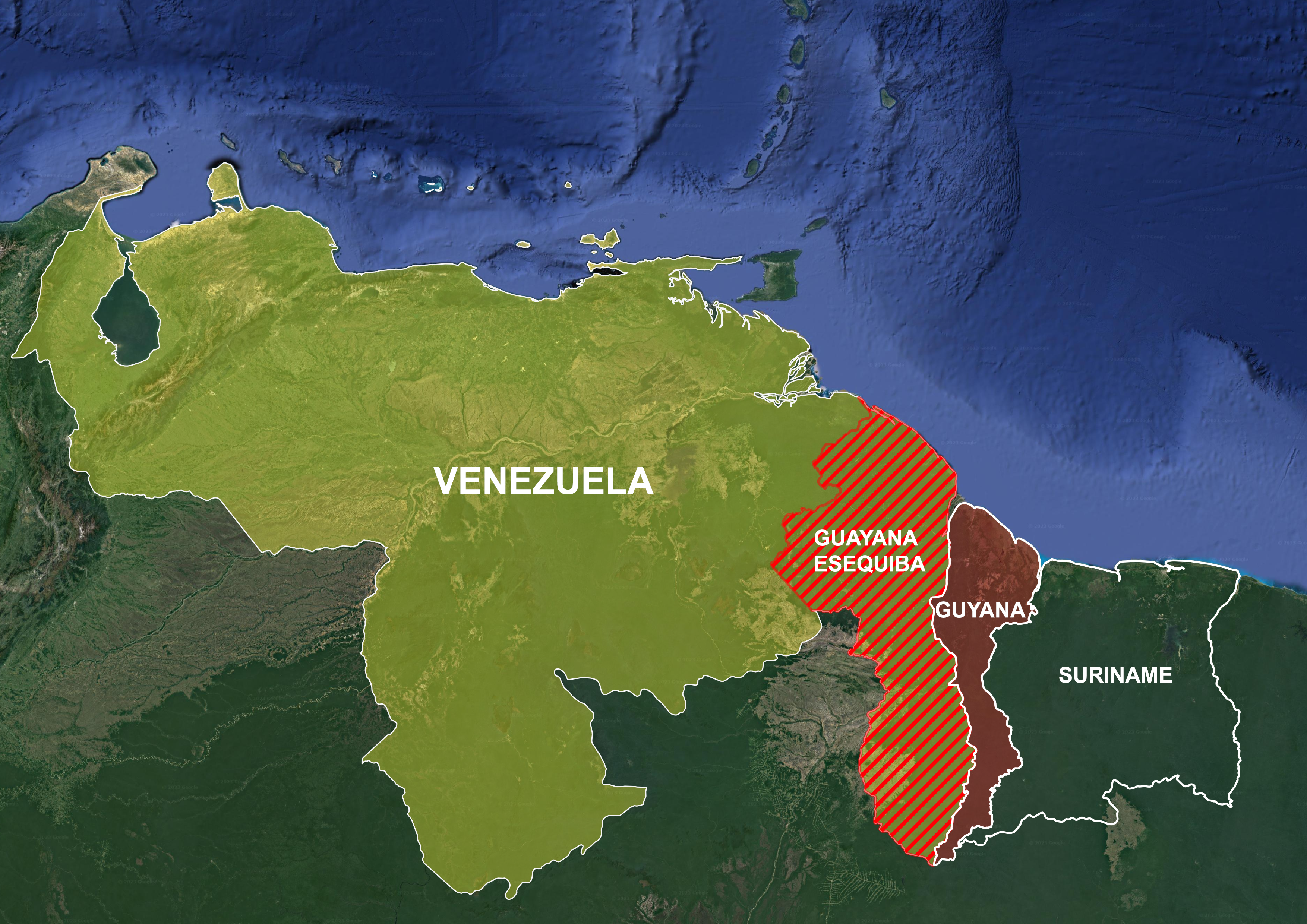 Спор ведется вокруг пограничного региона Эссекибо, который составляет около двух третей национальной территории Гайаны и примерно равен штату Флорида. Площадь региона составляет 160 тысяч квадратных километров (62 тыс. квадратных миль). Правительство Гайаны управляет территорией более 100 лет.